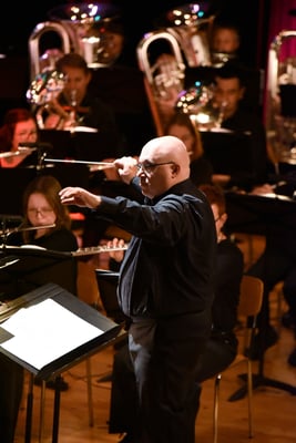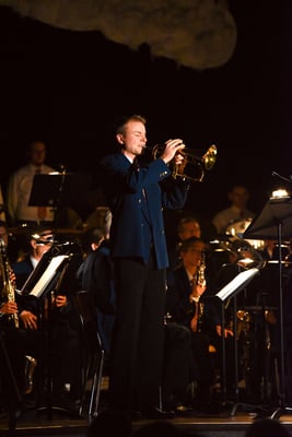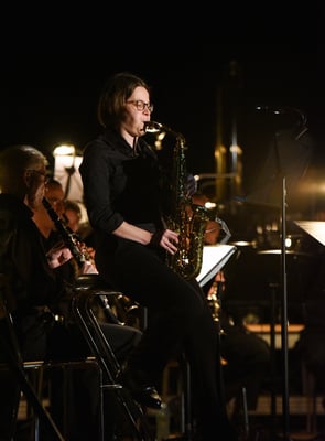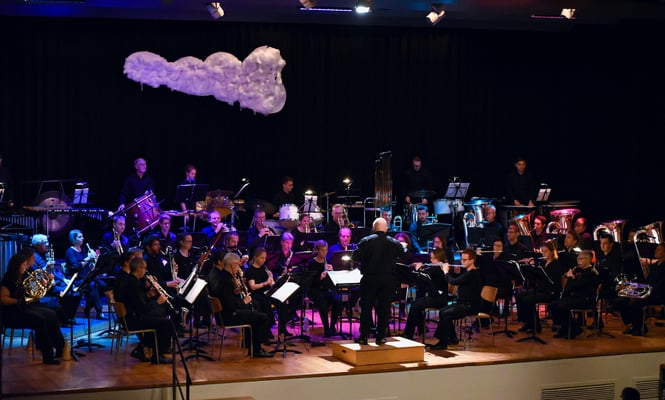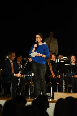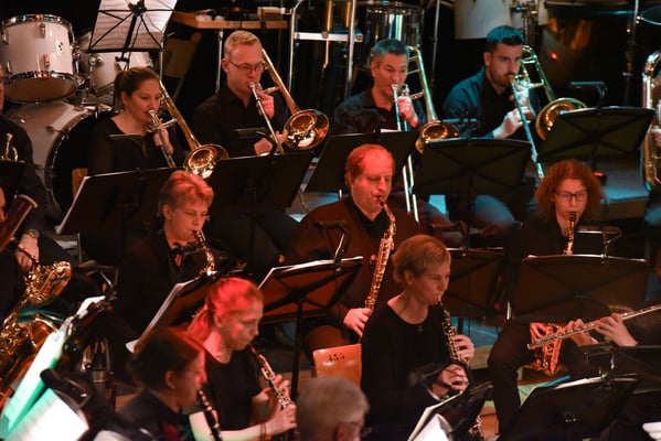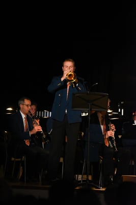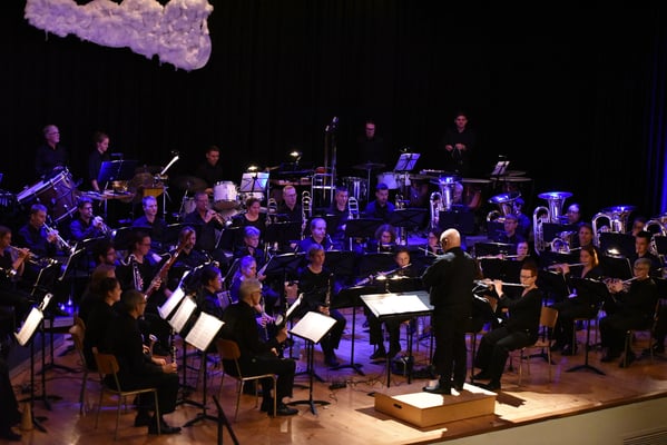 Zu Beginn der zweiten Konzerthälfte ertönten Jazz-Klänge in der ganzen Festhalle. Das eingespielte Team von Musikantinnen und Musikanten brachte das Stück «Birdland» auch im schimmernden Blaulicht im ganzen Saal verteilt zur Geltung. Neben «Noah’s ark» spielte die MGHS mit «Coldplay in symphony» ein weiteres Stück des belgischen Komponisten Bert Appermont, bei welchem er die grössten Hits der britischen Pop-Band zu einem sinfonischen Werk zusammenfügte.